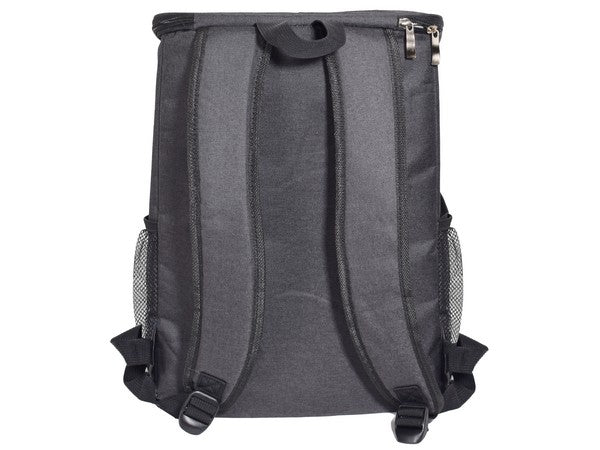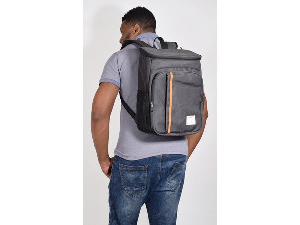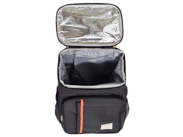 With Main Zip Cooler Compartment, Fully Lined with Waterproof PEVA, 2 Front Zip Compartments and 2 Mesh Side Pouches to hold water bottles or cans. With Carry Handle and Padded Adjustable Shoulder Strap